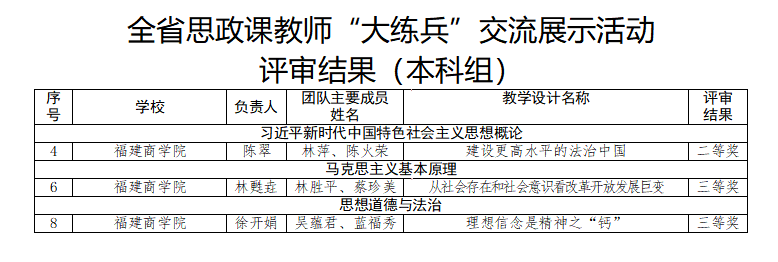 公司教师在全省思政课教师“大练兵”交流展示活动中获得本科组二等奖1个,三等奖2个,具体名单如下: