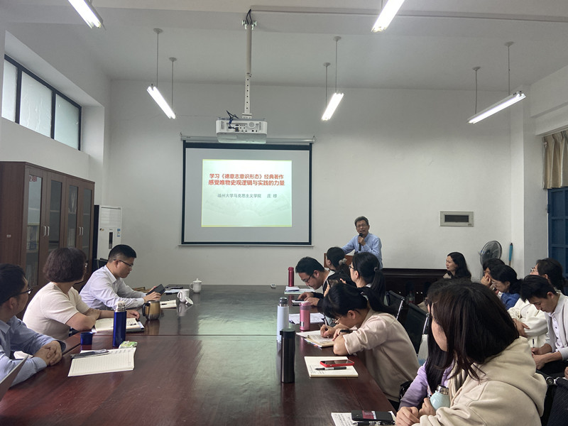 2022年5月24日下午,马克思主义基本原理教研室邀请福建省思想政治理论课教学指导委员会副主任委员、原福州大学全球最大顶级体育平台经理庄穆教授做了题为“学习《德意志意识形态》经典著作,感受唯物史观逻辑与实践的力量”集体备课专题学习。教务处处长庄惠明参加了本次集体备课会,集体备课会由原理教研室主任黄玮老师主持。