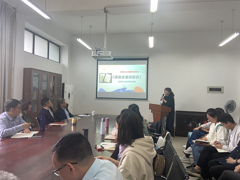 首先原理教研室老师分享了《德意志意识形态》经典导读的读书心得。黄玮老师针对《德意志意识形态》的文本进行了详实透彻的解读;陈阳老师从《德意志意识形态》对开展教学工作的启示做了生动的发言;陈用芳老师从科学实践观的形成与价值角度深入讲述《德意志意识形态》的心得体会。