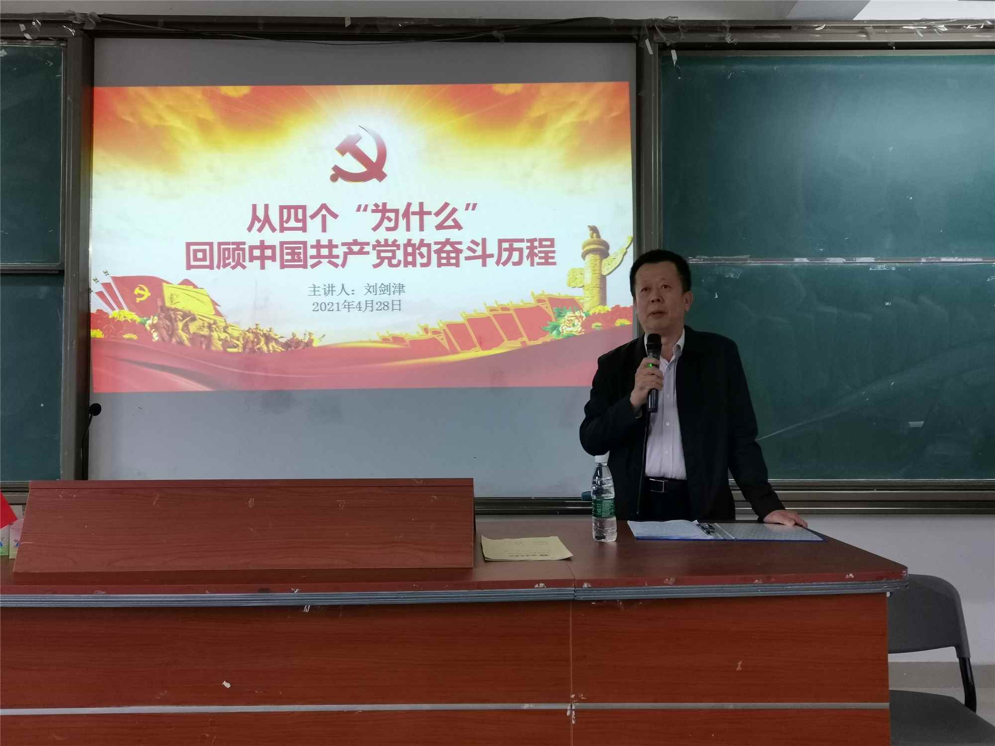 4月28日下午,公司党委书记刘剑津在连江校区分别为2020级酒店管理1、2班和2020级审计学1、2班员工讲授了题为“从四个‘为什么’回顾中国共产党的奋斗历程”的思想政治理论课。