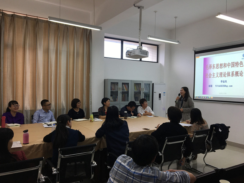 公司四个教研室依次选取各自的一个教学专题展开主讲、研讨。毛泽东思想和中国特色社会主义理论体系教研室由李金凤老师主讲,围绕着绪论中为什么学、怎么学、学什么三个问题展开,风趣幽默阐述了开学第一堂课的重要性,分享了自己的教学心得和分组教学的方法。中国近现代史纲要教研室由李莉老师就《纲要》课教学应该注意的几个问题展开,分析了史纲课与历史课、毛概课之间的差异,强调了经典阅读的重要性以及史料运用的规范与准确,李莉老师认真严谨的治学态度获得全体教师的热烈掌声。马克思主义基本原理教研室由黄玮老师就《认识世界和改造世界》着手,讲述了在授课中如何运用生活中细致琐碎的故事阐释基本原理,如何深入浅出,如何把哲学讲活,讲得引人入胜,亲切易懂。思想道德修养与法律基础教研室由蓝福秀老师分享了《“基础”课法律部分教学面临的矛盾和探索》,探讨了如何在有限课时的前提下,解决法律部分授课内容庞杂性、专业性、枯燥性的问题。四位主讲老师精心准备、精彩发言、倾囊相授,让全体教师受益匪浅,获益良多。