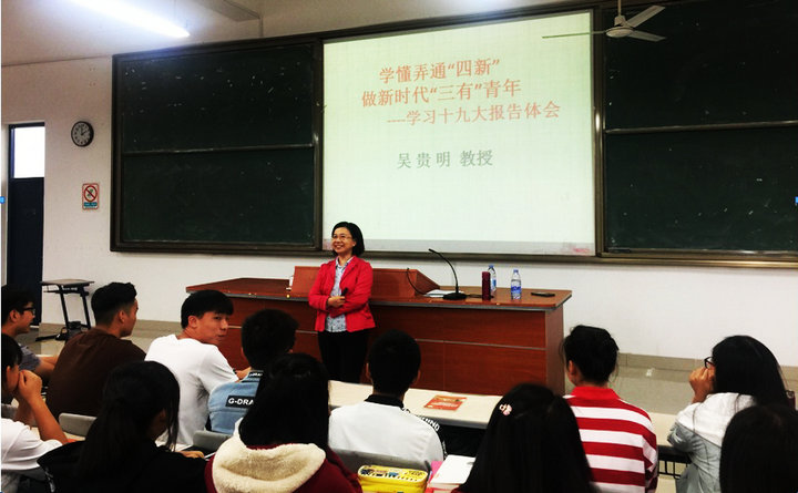 11月10日下午,福建省委党校吴贵明教授应邀为公司2017级工管系员工上了题为《学懂弄通“四新” 做新时代“三有”青年》的形势与政策课。