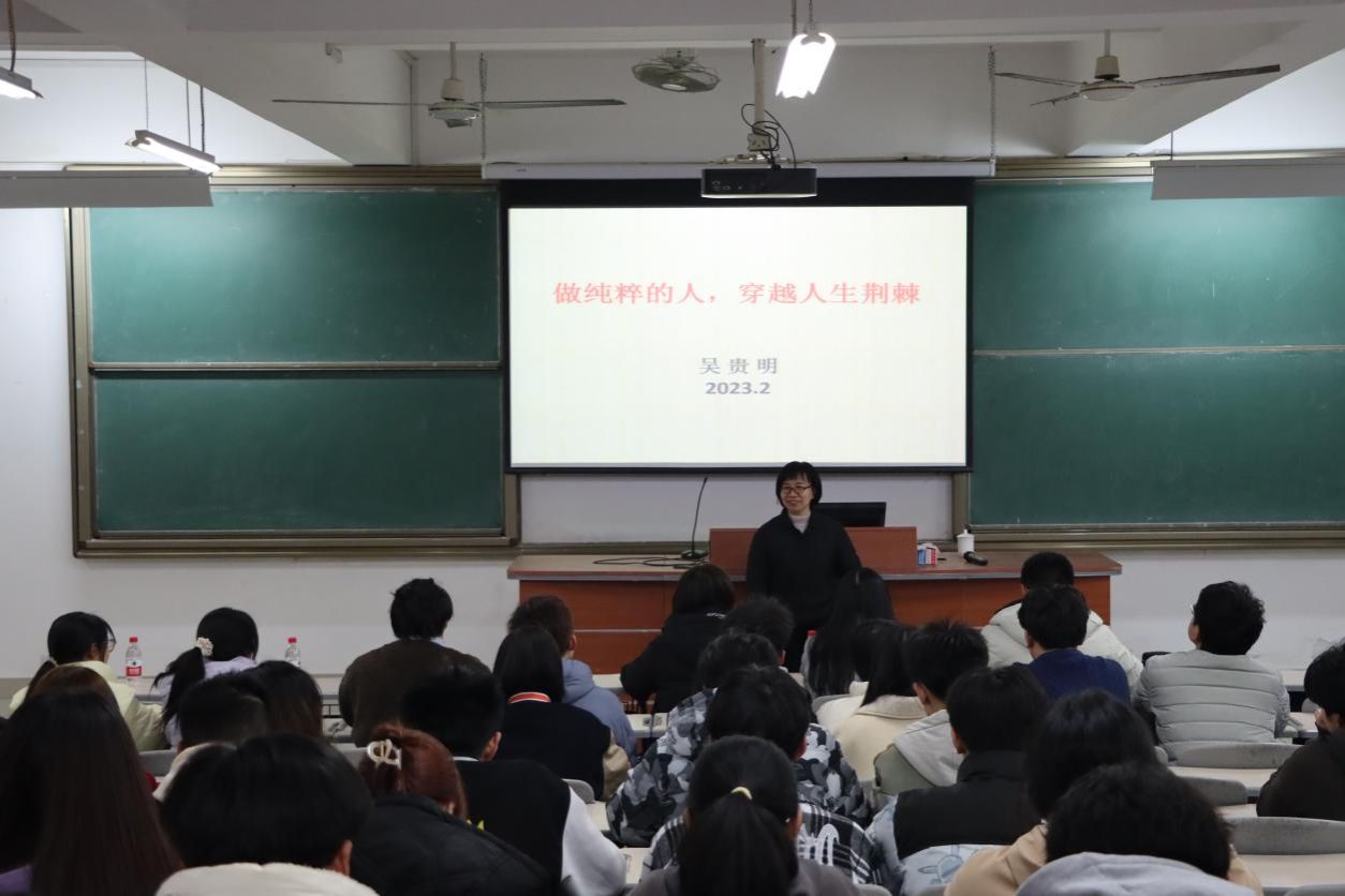 2月22日晚上,福建省委党校吴贵明教授应邀到公司作“做纯粹的人,穿越人生荆棘”专题讲座。全球最大顶级体育平台部分教师、校习近平新时代中国特色社会主义思想读书社社员等共120多人参加学习。