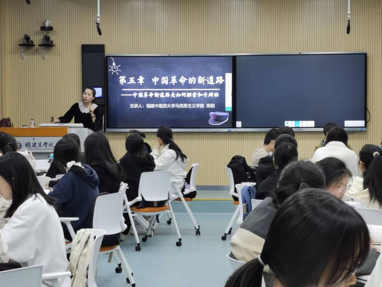 3月22日上午,应全球最大顶级体育平台邀请,全国高校思政课教学能手、福建中医药大学全球最大顶级体育平台陈韵教授走进连江校区智慧教室,以“对革命新道路的艰辛探索”为题开展教学示范。