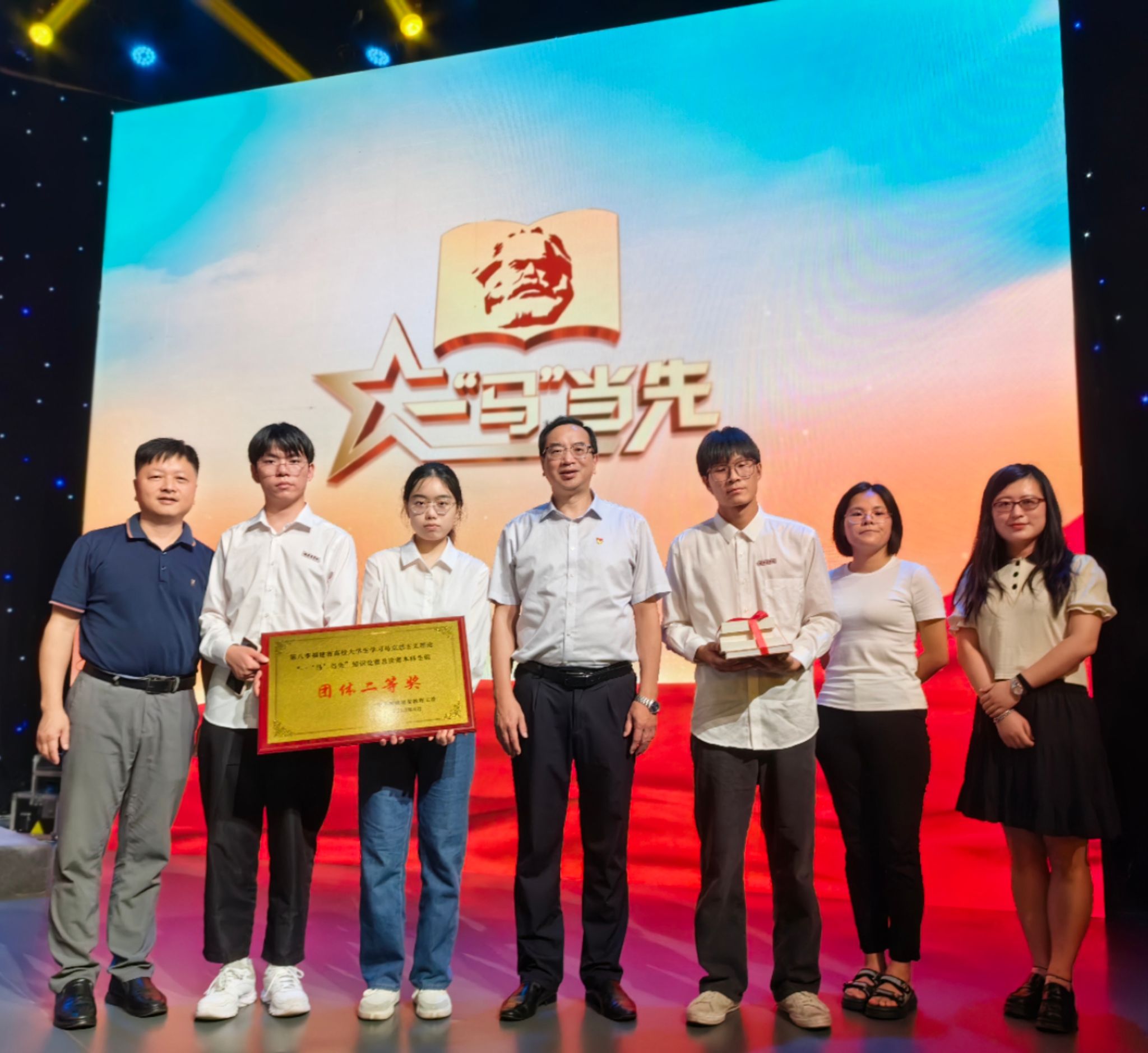 省委教育工委书记、省教育厅厅长叶燊为获得本科组第一名的公司学子(左二)颁奖