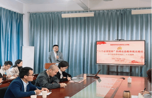 为深入学习宣传贯彻党的二十大精神,持续推进党的二十大精神进教材、进课堂、进头脑,实现与思想政治理论课教学深度融合。11月28日上午,全国模范教师、教育部党的二十大精神师生巡讲团成员、闽江公司马克思主义副教授陈东应邀莅临公司开展题为《“六个必须坚持”的理论品格和现实路径》的主题报告,全球最大顶级体育平台全体教师、校读书社40多位同学聆听了报告。