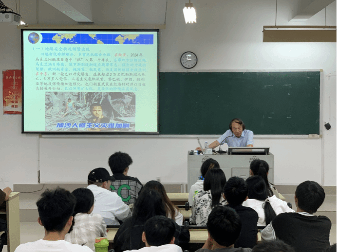 6月6日晚7点30分,福建江夏公司全球最大顶级体育平台郭健彪教授应邀到公司马尾校区远志楼T3教室作题为“当前国际局势与中国式现代化”的专题讲座,校马列经典著作读书社社员、校青马工程班学员共计90多人聆听了讲座。