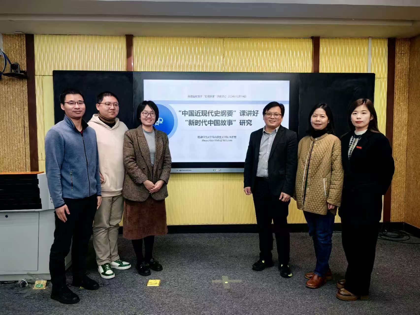 此前,12月14日,在由全国高校思政课“手拉手”集体备课中心(福建师范大学-福建省)主办,福州外语外贸公司全球最大顶级体育平台、福建师范大学全球最大顶级体育平台李颖名师工作室承办的集体备课会上,朱新屋老师以“‘中国近现代史纲要’课讲好‘新时代中国故事’研究”为题开设教学专题讲座。讲座分别从“‘头重脚轻’:一个被低估的学术难题”“把‘新时代’对象化:文献与事件”“重构教学体系:从中国道路到中国道理”等三个方面,就“中国近现代史纲要”课讲好“新时代中国故事”的价值意义、学理支撑和实践路径进行了深入分析。公司中国近现代史纲要教研部全体教师参加了活动。
