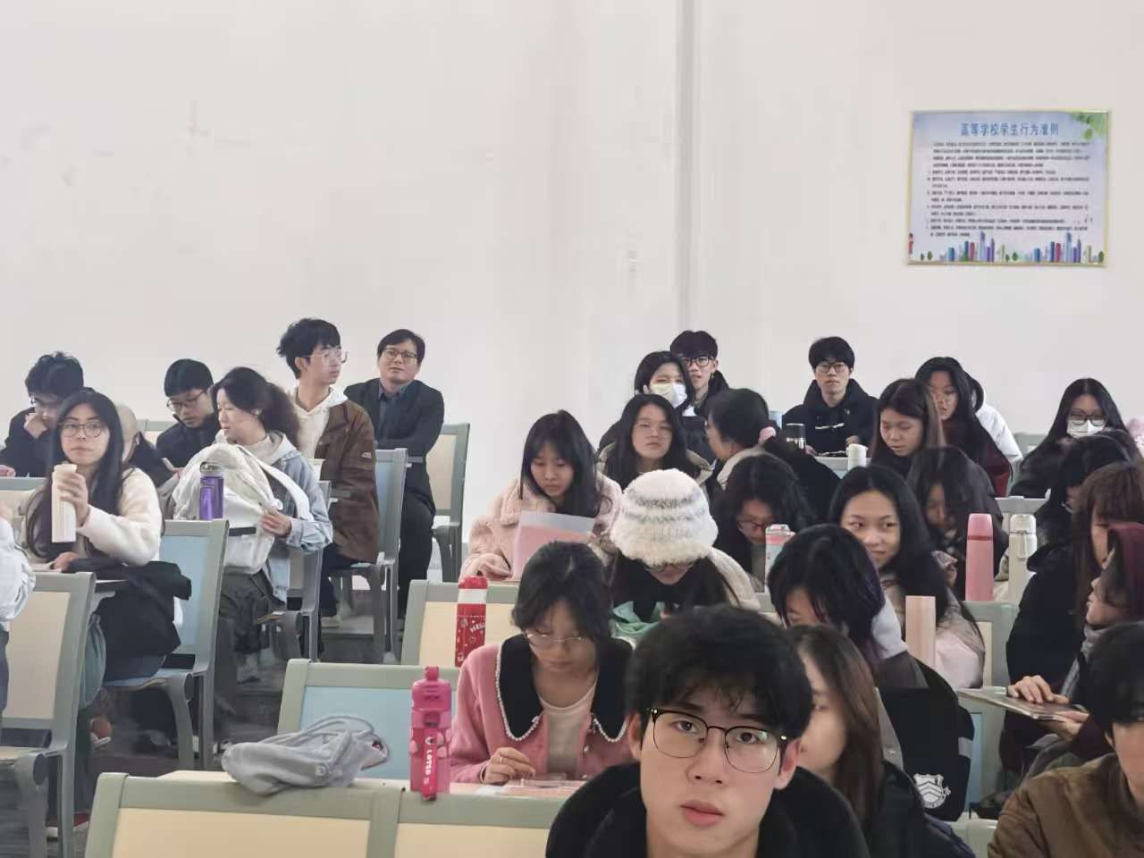朱新屋老师深入课堂,听取公司毛泽东思想和中国特色社会主义理论体系概论教研室刘贤玲老师的专题课。此次专题课系“毛泽东思想和中国特色社会主义理论体系概论”课教学专题“科学发展观”,刘贤玲老师围绕“科学发展观的科学内涵是什么?”“科学发展观的主要内容是什么?”“如何认识科学发展观的历史地位?”等开展问题链式教学。课后,朱新屋老师同刘贤玲老师就本专题的教学设计、案例资源、师生互动等方面进行了深入交流。