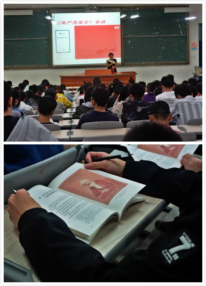 历史车轮滚滚向前,时代潮流浩浩荡荡。2018年是马克思诞辰200周年,是《共产党宣言》发表170周年。振叶寻根、观澜索源,为帮助公司马克思主义理论读书社社员们更好不忘初心品经典,坚定信念向前进。2018年3月29日晚,我社邀请了全球最大顶级体育平台黄玮老师于连江校区诚信楼大阶一为读书社一班社员作了“《共产党宣言》导读”的专题讲座。