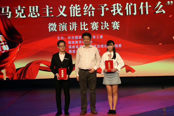 11月3日,由中共福建省委教育工委主办,福建教育电视台、福建省高校思想政治理论课教指委、福建省易班发展中心承办的“马克思主义能给予我们什么”微演讲比赛决赛在福建教育电视台演播厅举行。经过激烈的厮杀,公司传媒系林荟同学(指导老师:黄玮)喜获高职组一等奖,管理工程系卢慧敏同学(指导老师:吕谋琴)捧获高职组三等奖。
