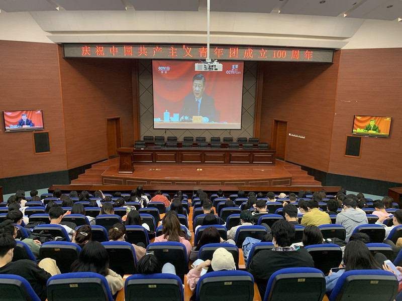 5月10日上午,庆祝中国共产主义青年团成立100周年大会在北京隆重举行。校马列经典著作读书社联合校青马班在马尾校区学术报告厅共同收看大会实况直播,集中聆听习近平总书记重要讲话,回望中国共青团百年风雨历程的辉煌成就。