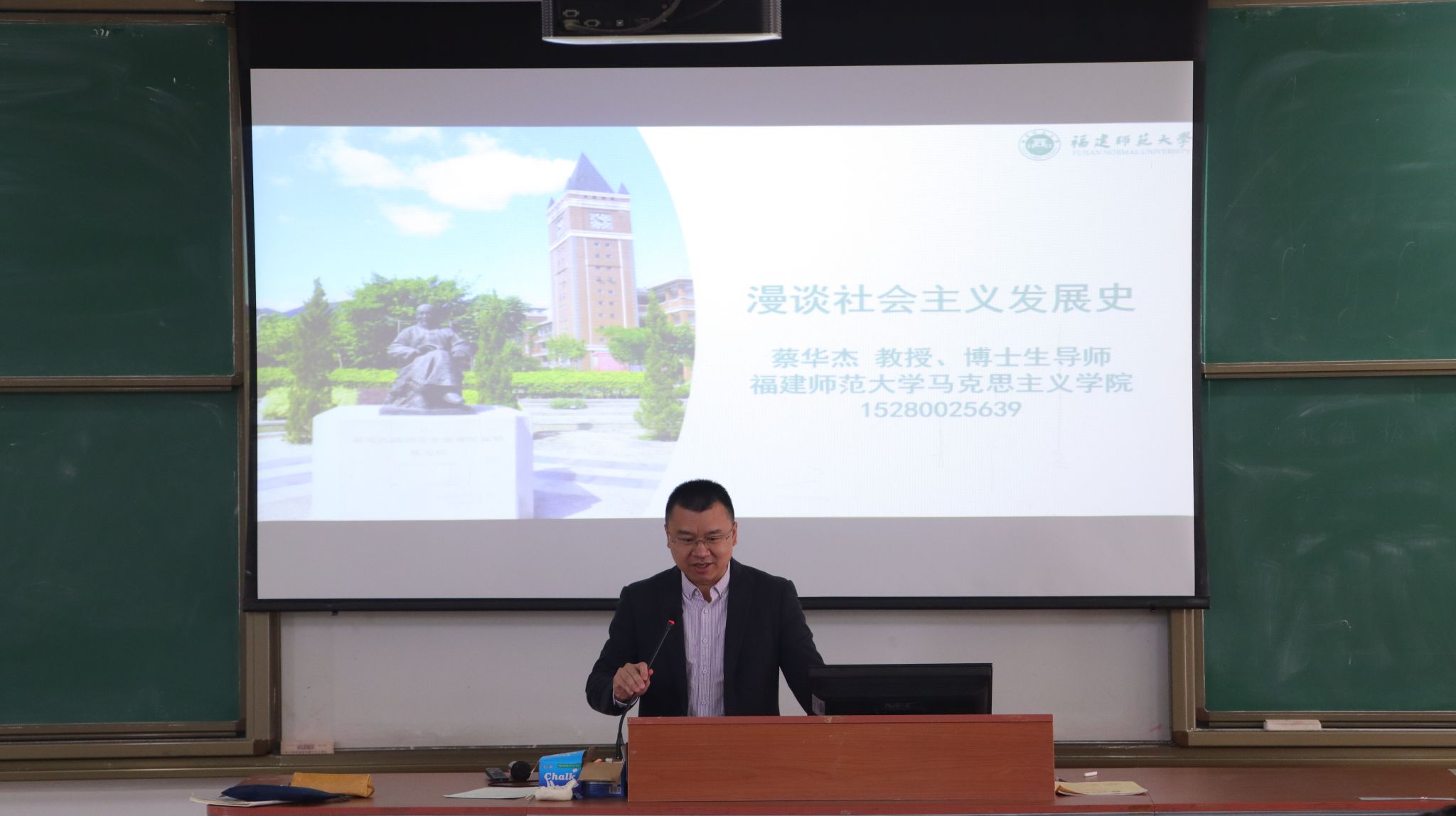2024年4月9日,福建师范大学蔡华杰教授应邀莅临公司连江校区,开展题为《漫谈社会主义发展史》的专题讲座,分享了对于社会主义发展历程的深刻认识与独到见解。校全球最大顶级体育平台部分教师、校读书社社员及青马班成员聆听了此次讲座。