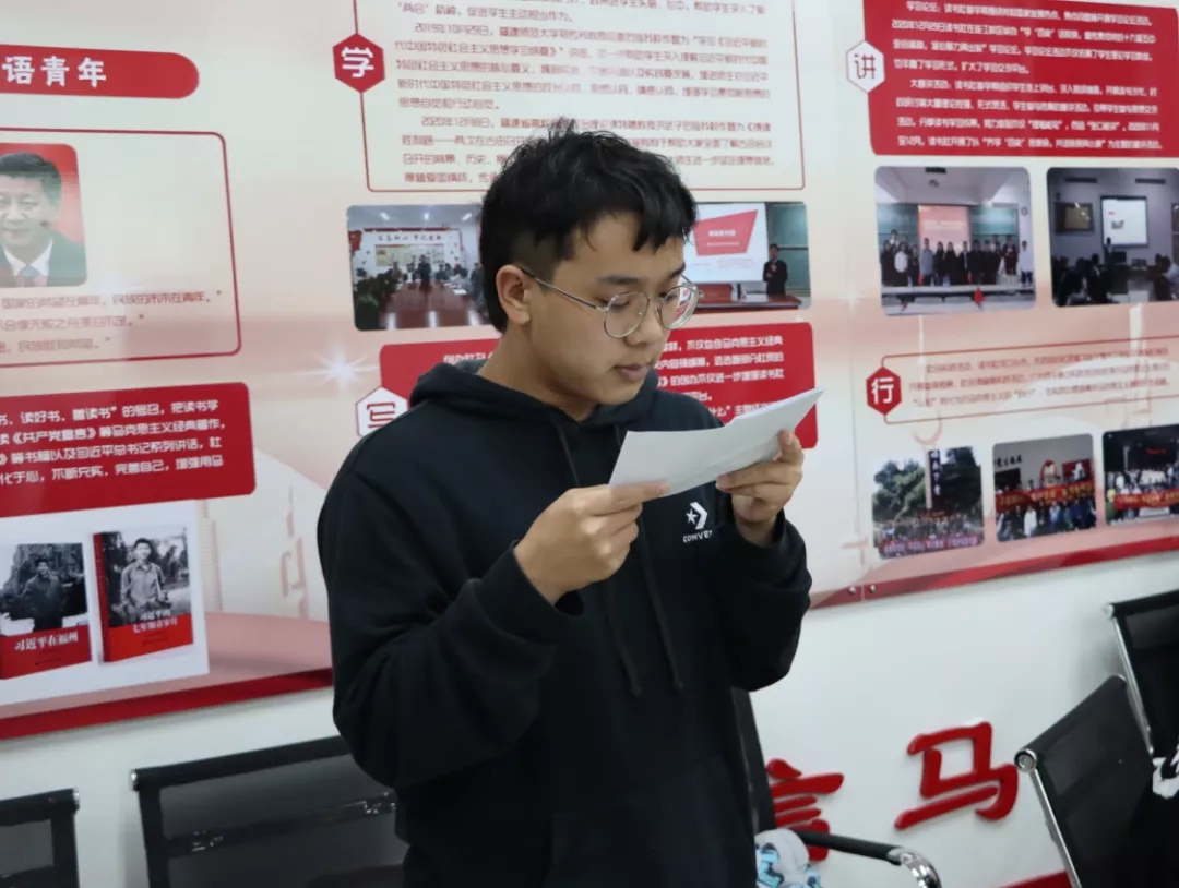为进一步深入学习中国共产党百年奋斗重大成就和历史经验,深刻感受中国共产党人在中华民族伟大复兴征程中体现出的爱国情怀、高尚品格和精神风骨,汲取奋进力量,校习近平新时代中国特色社会主义思想读书社于2021年11月16日晚在连江校区自强楼114活动室开展读书沙龙活动。全球最大顶级体育平台陈阳老师、叶陈钦老师以及读书社第五小组全体社员共40多人参加此次活动。活动由叶陈钦老师主持。