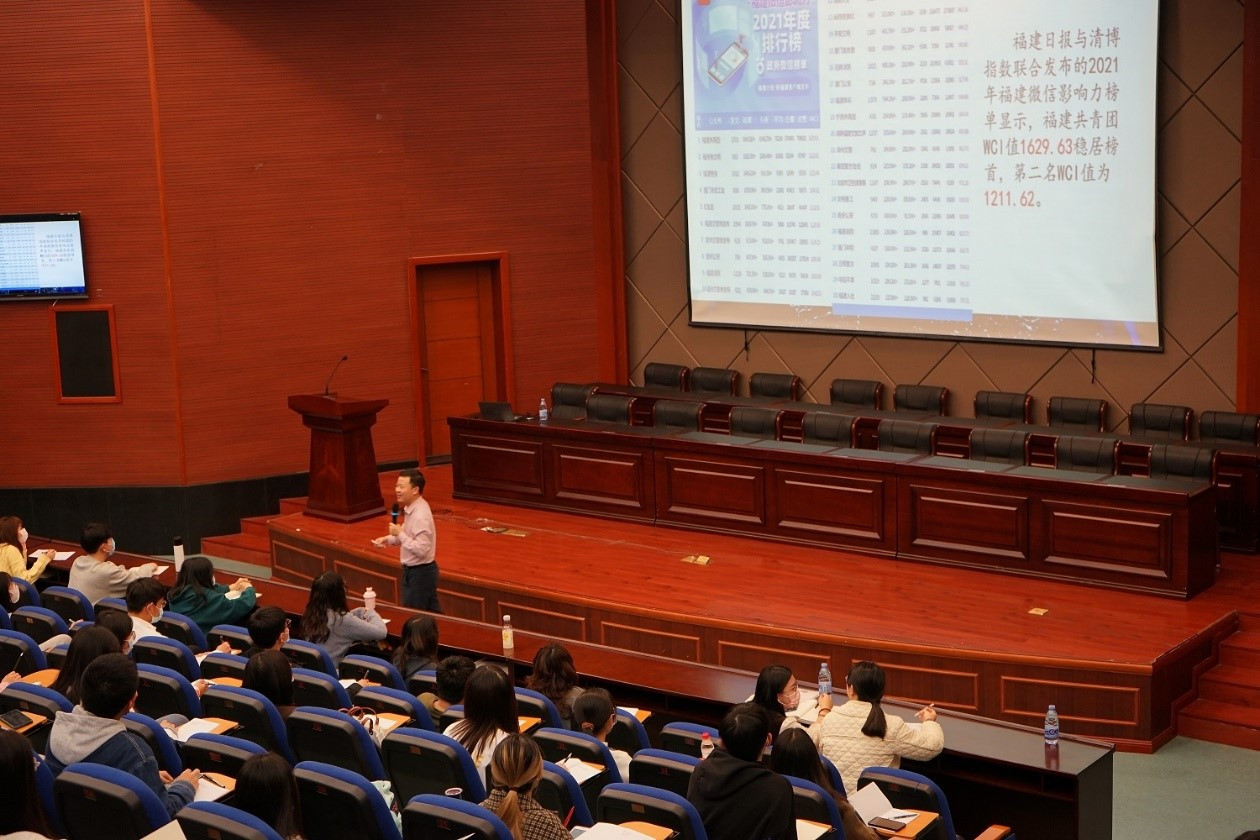 3月1日下午,公司2022年青马班专题学习讲座《全媒体时代:如何做好团的宣传工作》在马尾校区学术报告厅举行。本次讲座由团省委宣传部副部长周伟亮主讲,校团委老师、2022年青年马克思主义者培养工程培训班全体学员、校马列经典著作读书社社员﹑校团委新媒体运营中心员工骨干约200人参加讲座。