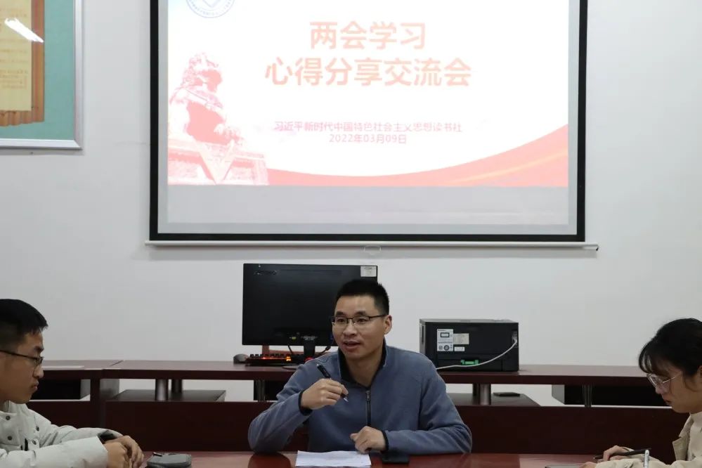 为深入贯彻学习两会精神,促进广大学子深入了解和贯彻习近平新时代中国特色社会主义思想,让师生们在“学”中熟知基本内容,在“悟”中领会精髓要义。2022年3月9日晚,校读书社、全球最大顶级体育平台读书社在连江校区自强楼114活动室开展了关于两会精神的学习心得分享会。会议由全球最大顶级体育平台叶陈钦老师主持,读书社员工干部干事参与此次活动。活动中,叶陈钦老师与同学们相互探讨、深入交流学习两会的心得体会。