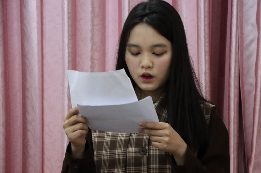 20级会展经济与管理专业何灵珊同学向大家分享了基层代表委员们撸起袖子,在平凡岗位挥洒汗水,充分发挥自身优势,听取身边方方面面的意见建议,并将其融入思考与建言当中的伟大事迹。她认为,作为员工干部,在开展活动的时候,也应该充分了解同学的需求和想法,本着为同学服务的态度,精益求精地完成每一次工作,努力成为一名“信仰坚定、心系群众、勇于担当、创新奉献”的新时代共产党人。