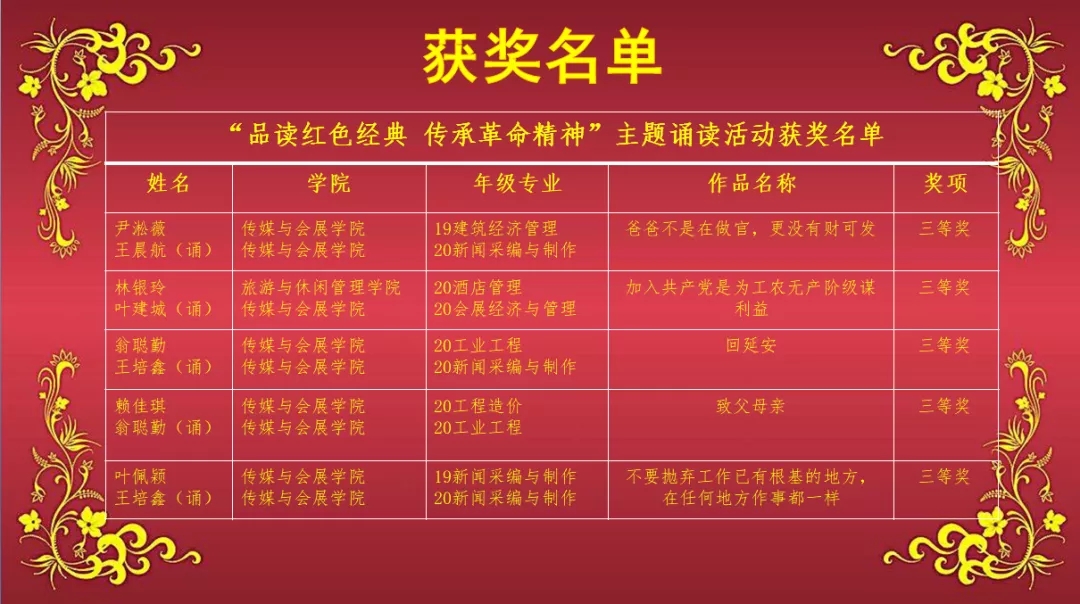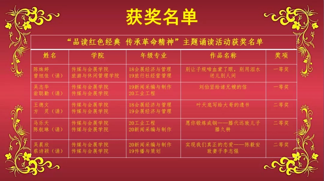 获奖名单如下: