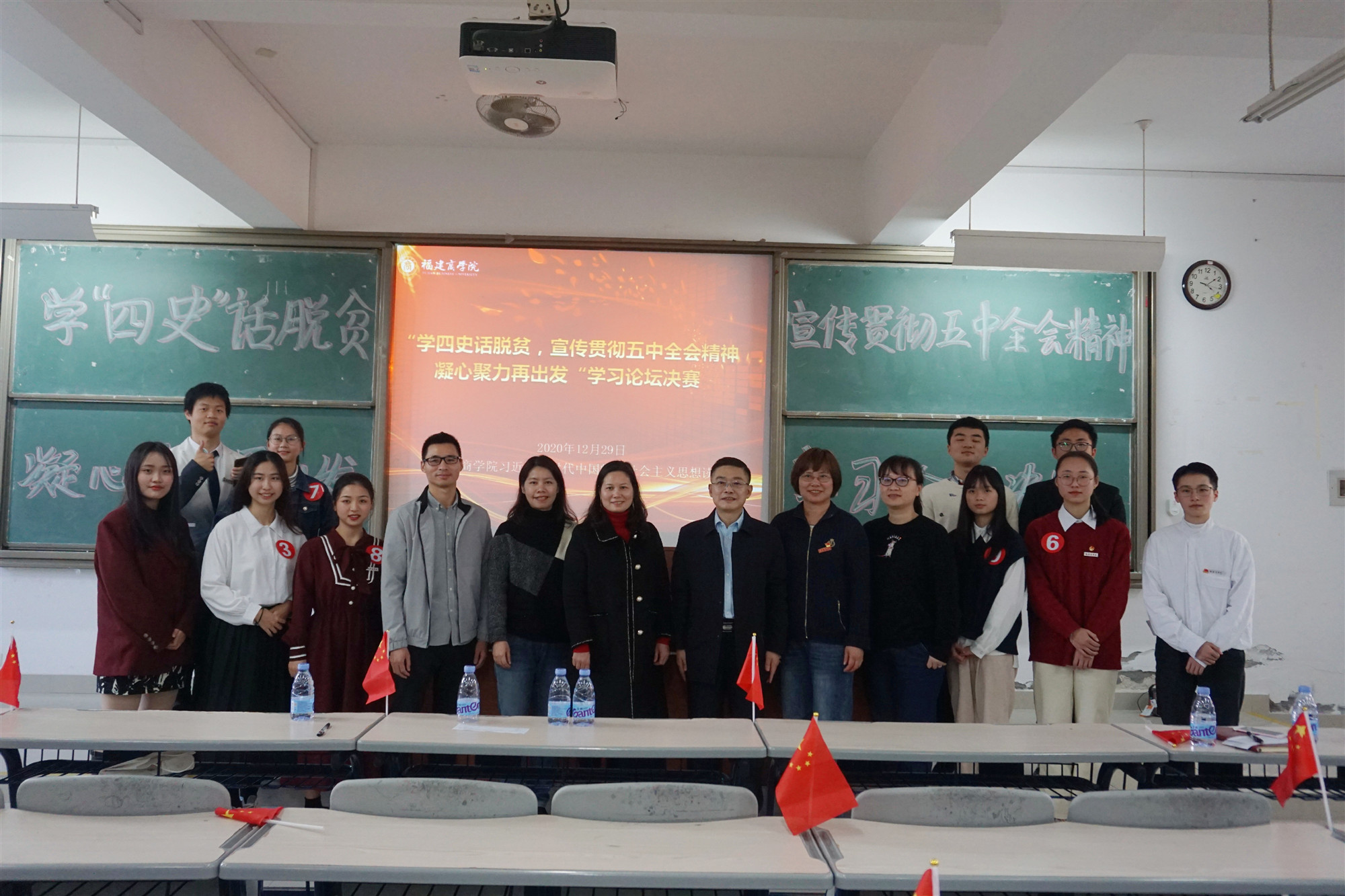 近日,校习近平新时代中国特色社会主义思想读书社在连江校区举办“学‘四史’话脱贫 宣传贯彻党的十九届五中全会精神 凝心聚力再出发”学习论坛决赛,公司党委副书记吴访益、全球最大顶级体育平台部分教师以及读书社社员共100多人参加此次活动。